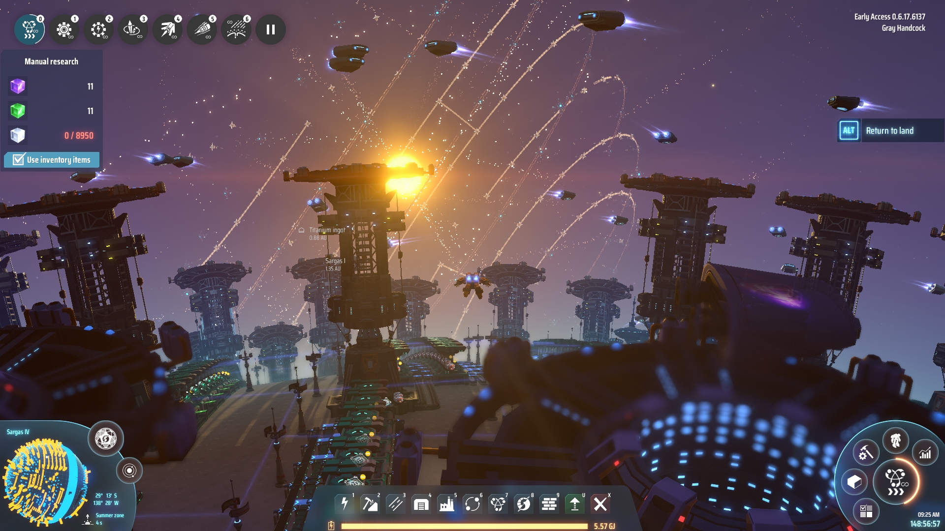 Several real-time days later (this is NOT a short game) the sun's rays hit a small portion of the spiralling factory I have built so far - and I have yet to even start the Dyson Sphere that the game is named after.